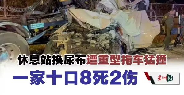 休息站換尿布 遭重型拖車猛撞 一家十口8死2傷