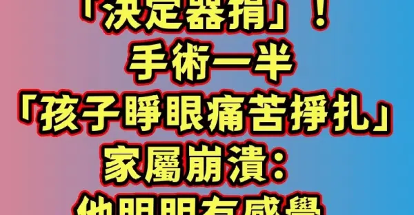 孩子被醫生宣判腦死「決定器捐」! 手術一半「孩子睜眼痛苦掙扎」家屬崩潰:他明明有感覺 #超扯後續曝光