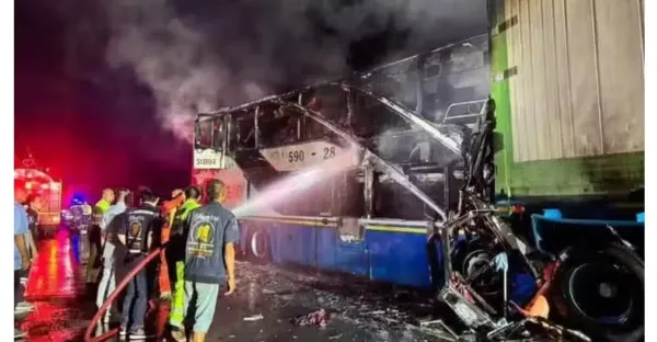 泰國旅遊巴士撞貨車 起火燃燒 釀7死53傷!