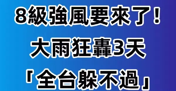 快訊/8級強風連帶大雨狂轟三天「全台躲不過」時間點曝光