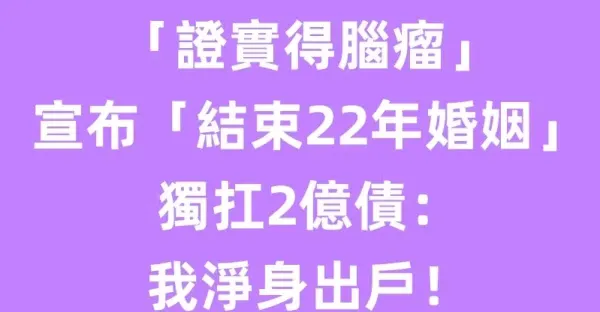快訊/58歲徐亨「證實得腦瘤」宣布「結束22年婚姻」獨扛2億債:我凈身出戶! #離婚原因曝光