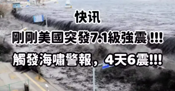 快訊/剛剛,美國突發7.1級強震 !!!觸發海嘯警報,4天6震!!!