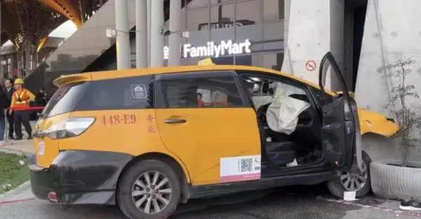 花蓮車站前出車禍!計程車暴沖「車頭全爛」5人受傷、駕駛夾車內