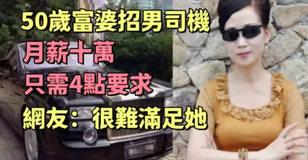 50歲富婆招男司機,月薪十萬隻需4點要求,網友:很難滿足她……