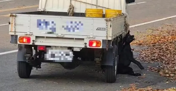 黑狗被弔掛行駛中小貨車拖行!台南警展開調查 飼主稱兜風「不小心掉下去」