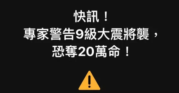 快訊!專家警告9級大震將襲, 恐奪20萬命