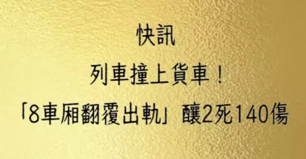 快訊/列車撞上貨車!「8車廂翻覆出軌」釀2死140傷