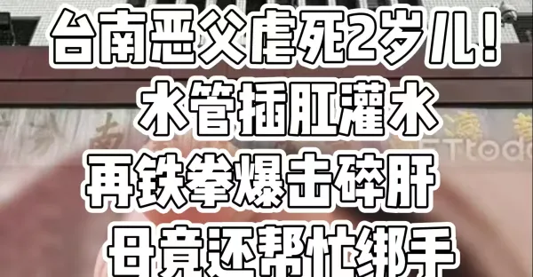 台南惡父虐死2歲兒!水管插肛灌水再鐵拳爆擊碎肝 母竟還幫忙綁手