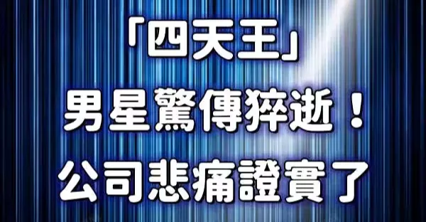 快訊/「四天王」男星驚傳猝逝!公司悲痛證實了!