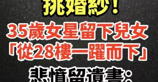 丈夫和小三挑婚紗!35歲女星留下兒女「從28樓一躍而下」 悲憤留遺書:「我一滴眼淚都流不出.」