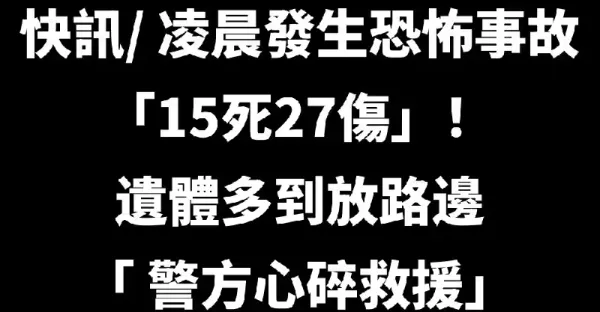 快訊/凌晨發生恐怖事故「15死27傷」!遺體多到放路邊「 警方心碎救援!」