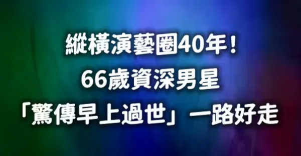 縱橫演藝圈40年!66歲資深男星「驚傳早上過世」一路好走!