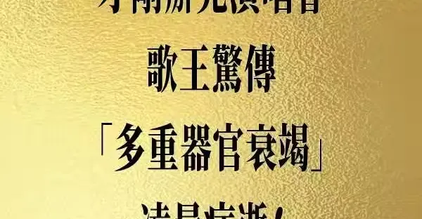 才剛辦完演唱會 歌王驚傳「多重器官衰竭」凌晨病逝