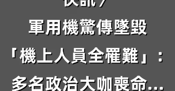 快訊/軍用機驚傳墜毀「機上人員全罹難」:多名政治大咖喪命...