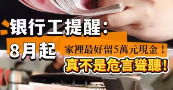 銀行員工提醒:8月起,家裡最好留5萬元現金!