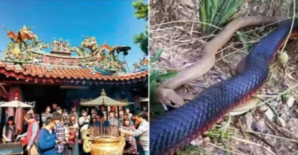好玄南投紫南宮,2條蛇突然竄出工人秒愣住,想都沒想立刻揮手弄暈,隔天下場 妻子都嚇到了!