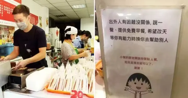 攏系甘苦人!早餐店老闆「推出免費A餐」公告:有困難就來吃, 網友發現「底下多了一行字」瞬間被暖哭!