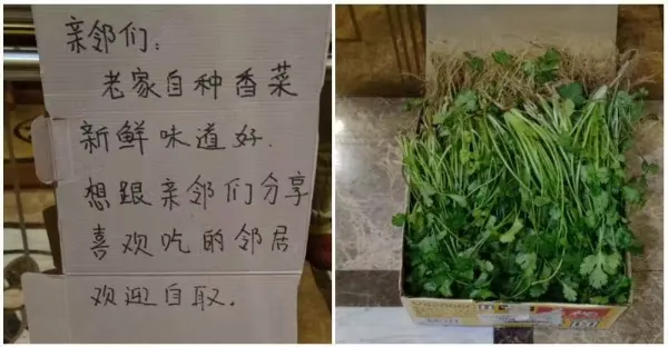 老家自己種的!大方鄰居「電梯裡放新鮮香菜」和大家分享 網大讚是天使「他一看卻搖頭了」