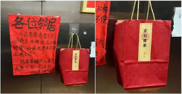 家有喜事!他在電梯「放一大包喜糖」分享喜悅 最後「竟收到兩張紙條回覆」網讚爆:太有愛