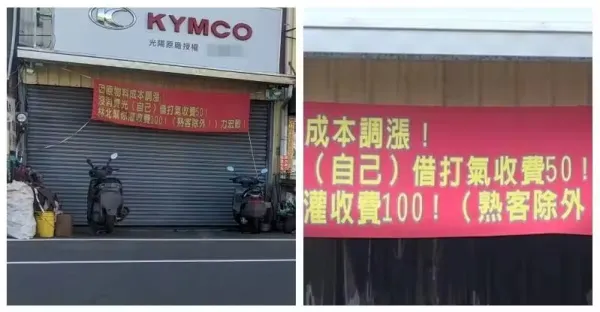輪胎打氣收50!機車行老闆「拉布條公告」引論戰 「親揭收費真相」坦言很無奈