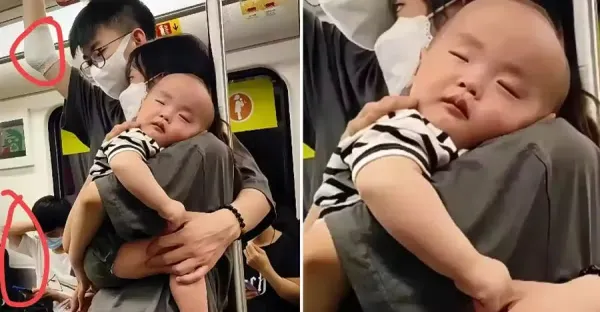 小夫妻抱熟睡女兒乘車,全程「無人讓座」,寶寶這一舉動讓人心疼