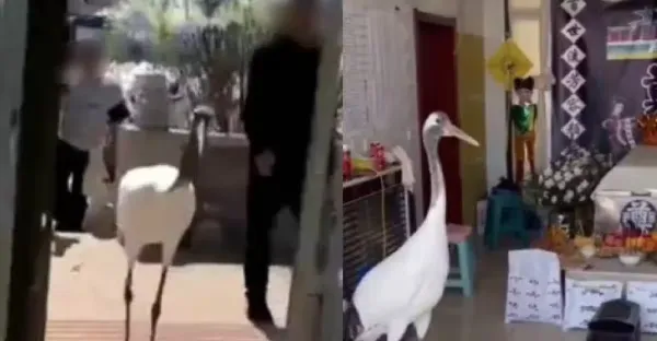喪禮驚見祥瑞!87歲老翁過世「野生仙鶴叩首送行」吉祥畫面曝光 安詳駕鶴西遊「家屬敬送回禮」