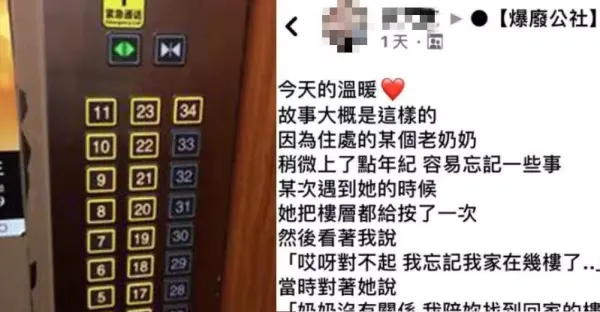 忘記回家的路了!鄰居阿嬤搭電梯「每層樓都按」 隔天見「房東暖心貼紙條」!