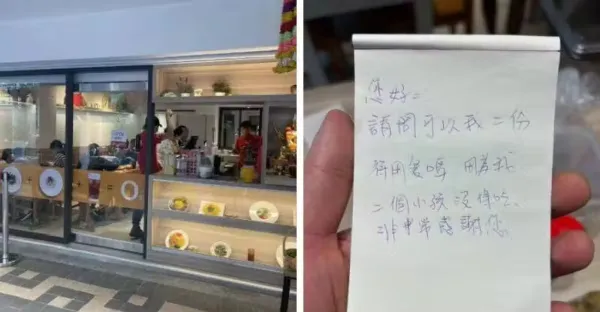 帶2娃進餐廳!瘖啞爸寫紙條「2小孩沒得吃」含淚求助 老闆「下秒送上暖舉」萬人大讚:台灣最有人情味