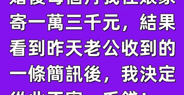 婚後每個月我往娘家寄一萬三千元,結果看到昨天老公收到的一條簡訊後,我決定從此不寄一毛錢!