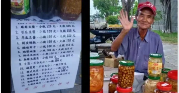 不做就沒飯吃!高雄73歲阿公「賣醬菜獨扛家計」風雨無阻 「老伴兒孫全靠他」網淚呼籲:用新台幣下架他