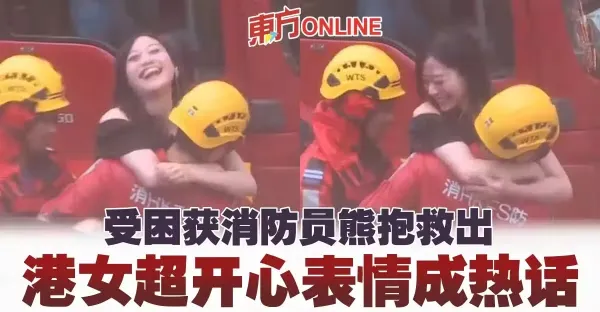 港女被困獲消防員熊抱救出 興奮大笑畫面成熱話