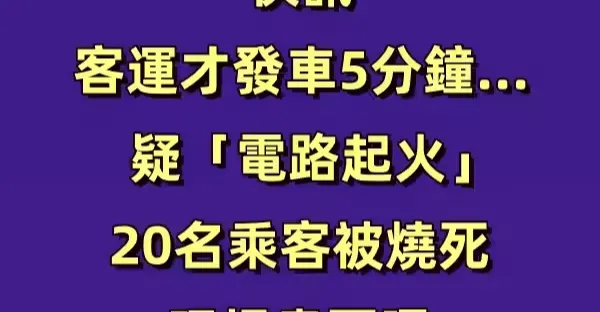 快訊/客運才發車5分鐘... 疑「電路起火」20名乘客被燒死 現場畫面曝