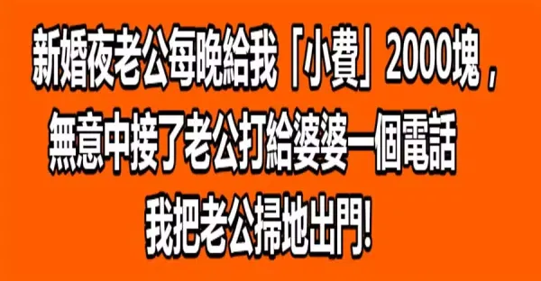 新婚夜老公每晚給我「小費」2000塊,無意中接了老公打給婆婆一個電話...我把老公掃地出門!