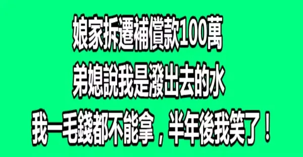 娘家拆遷補償款100萬,弟媳說我是潑出去的水,我一毛錢都不能拿,半年後我笑了!