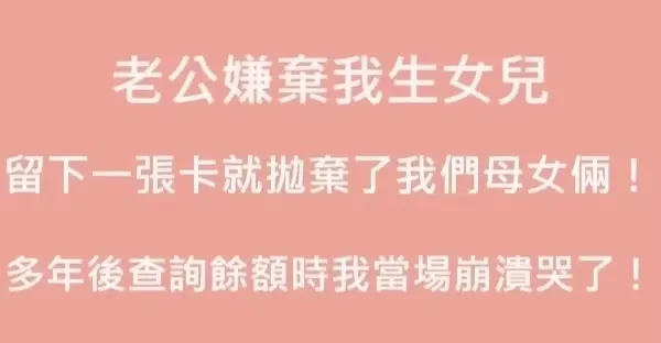 老公嫌棄我生女兒 ,留下了一張卡就拋棄了我們母女! 多年後查詢餘額時我當場崩潰哭了!