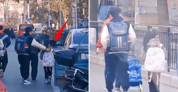 女孩獨自上學,媽媽追上時發現,女兒被高年級小哥哥一路護送,網讚:家教太好了