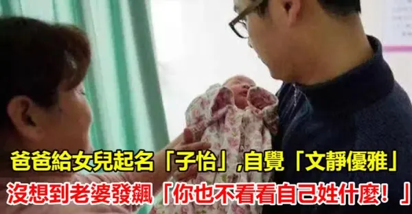 爸爸給女兒起名「子怡」,自覺「文靜優雅」,沒想到老婆發飆「你也不看看自己姓什麼!」