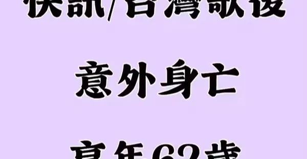 快訊 / 台灣歌后意外身亡! 享年62歲