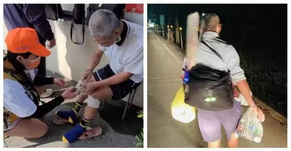 永遠跟在媽祖身後!跛腳伯紗布纏繞「孤身蹣跚走夜路」25年沒缺席 貨車司機「暖心1舉動」網全看哭