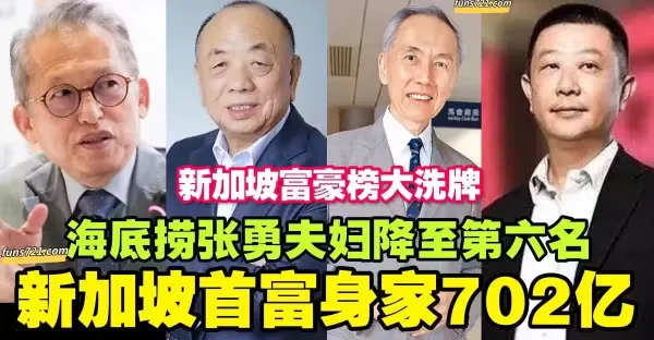 新加坡富豪榜大洗牌:海底撈張勇夫婦降至第六名,新加坡首富身價702億!