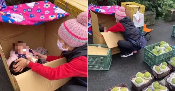 嬰睡紙箱涕淚喊「媽媽抱抱」 母冒風雨擺攤苦撐生計