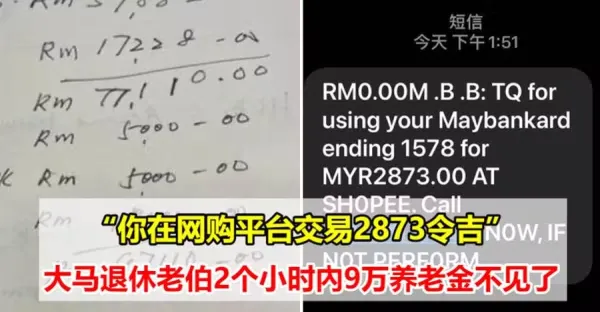 「你在網購平台交易2873令吉」,大馬退休老伯2個小時內9萬養老金不見了