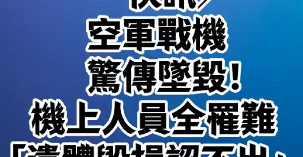 快訊/空軍戰機驚傳墜毀!機上人員全罹難「遺體毀損認不出」