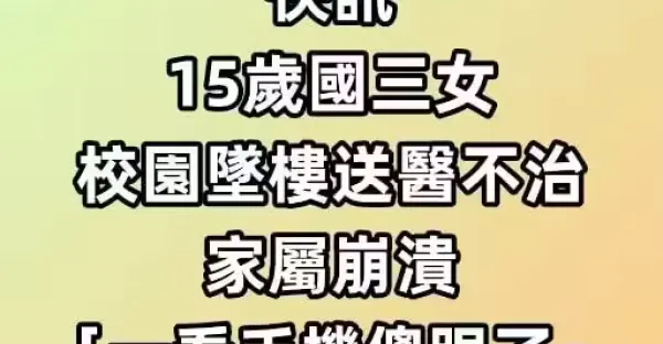 快訊/ 15歲國三女「校園墜樓送醫不治」家屬崩潰「一看手機傻眼了…」