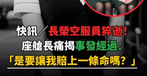 長榮空服員猝逝 座艙長發聲還原經過:「是要讓我賠上一條命嗎」