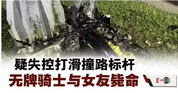 疑失控打滑撞路標杆 無牌騎士與女友斃命