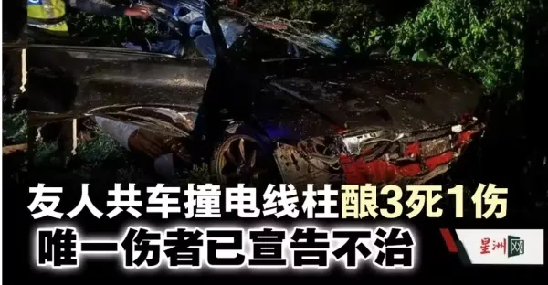 友人共車撞電線柱釀3死1傷 唯一傷者已宣告不治