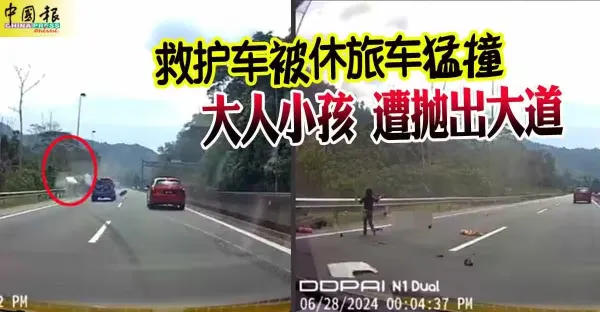 救護車被休旅車猛撞 大人小孩 遭拋出大道