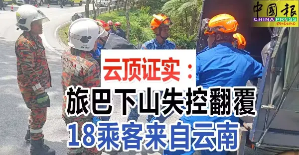 雲頂證實:旅巴下山失控翻覆 18乘客來自雲南