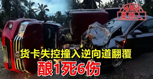 貨卡失控撞入逆向道翻覆 釀1死6傷